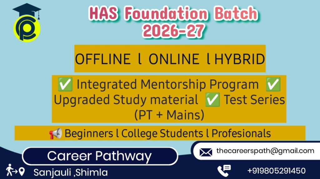 Career Pathway – HAS Exam Coaching in Shimla 🌟 📍 Location: DD Tower Building, Opposite Jubble House, Sanjauli, Shimla-06 📞